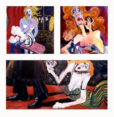 A series of expressionistic oil on canvas, these paintings poke fun at women’s frustrations and secret desires. The narrative describes the search for beauty and the need to be desirable for a man, which are present yet distant feelings. I focused on grotesque and comic, which express the polarizing aspects of women who feel captive in a world of pain and pleasure, as well as sin and sanctity.