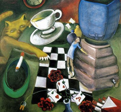 On the 100th anniversary of Lewis Carroll’s death, I painted a long-lived interest: “Alice in Wonderland”. With the intention of staying true to Carroll’s humor and abstraction, the paintings explore the sense of being an outsider within one’s own home.